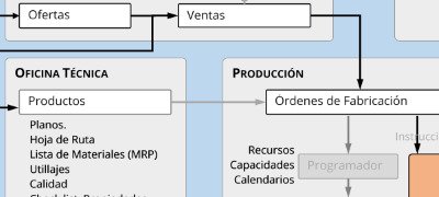 - Integra a los operarios de planta. Con terminales de planta para informar del trabajo a realizar (orden de operaciones, planos...) y recogida de tiempos de trabajo.
