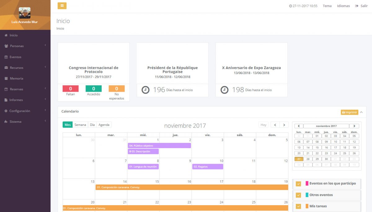 Es un software integral para la gestión del protocolo y los eventos. Esta solución está desarrollada por profesionales del protocolo y congrega las utilidades necesarias para que puedas organizar un acto o evento institucional. El sistema te ayudará desde la fase inicial de planteamiento de objetivos, hasta la memoria resumen final.