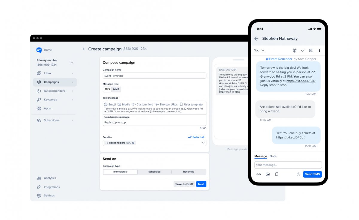 SimpleTexting es una solución de envío masivo de SMS para realizar campañas de marketing, con posibilidad de enviar imágenes, GIFs, vídeos y archivos de audio.